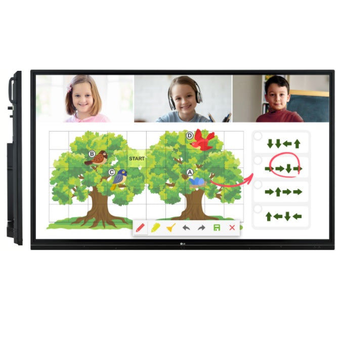 Tablero Digital Interactivo 55". Operacion 16/7. Brillo (con cristal): 350 nit (Típ.), Tipo táctil: IR. Punto multitáctil: Máx. 20 puntos. Interfaz: HDMI (3), RGB/Entrada de audio, Entrada RS232C, USB 2.0 (3, Frente: 2ea, Parte inferior: 1ea solo para actualización de software), USB 3.0 (3), Salida táctil (USB 2.0, Tipo B) (2), HDMI (1), Salida óptica/Salida de audio. A pedido: 15 semanas.