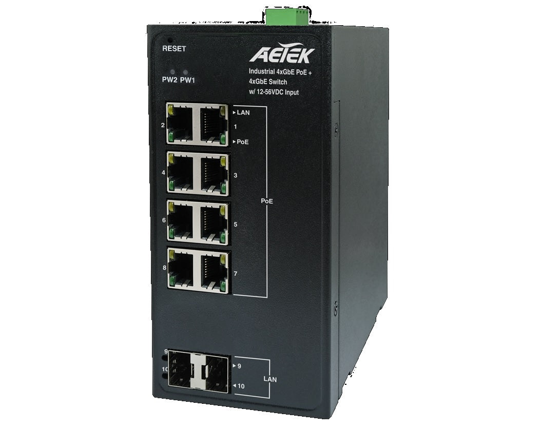 GbE Industrial switch with 12-56VDC INPUT. 8*30W PoE, 2*SFP. Total power budget: 12V: 90W ;24V: 160W;48V: 240W. 6KV PoE surge protection. Operating temperature: -40°C ~ 75°C. No incluye fuente de poder. Garantia 2 años. Reemplaza a H36-082-30