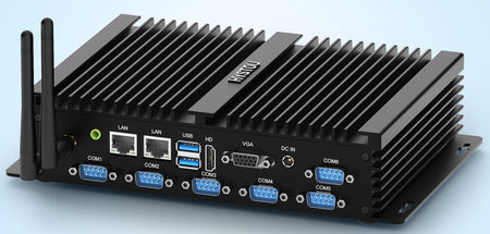 Dual Lan, 6 USB, 1 HDMI, 1 VGA, 6 Serial, Mini PC Industrial, H7 Core i5-8350U with 16G DDR4 RAM, 512G SSD, Fanless, Win11 compatible, not included.